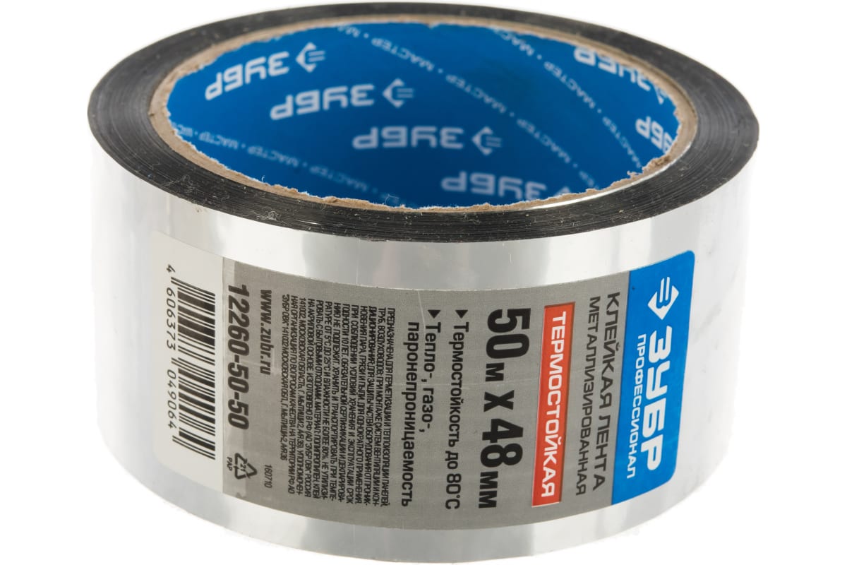 Алюминиевая лента ЗУБР Профессионал 12262-50-50 до 120 °С 60мкм 50мм х 50м