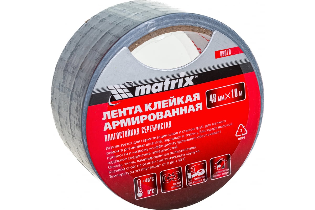 Лента клейкая армированная влагостойкая 48мм х 10м серебристая Matrix 89070