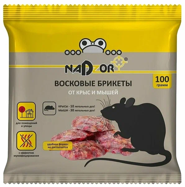 Восковые брикеты от мышей и крыс 100гр Nadzor NASA370