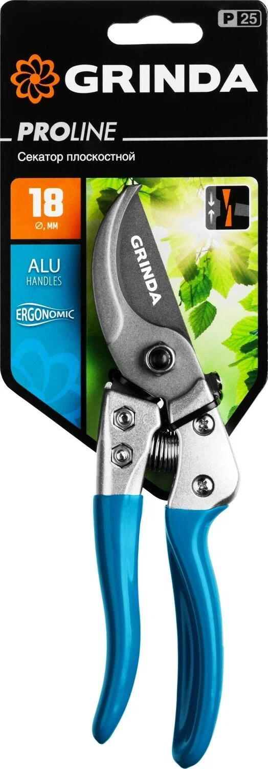 Секатор GRINDA PROLine P-25 с эргономичными алюминиевыми рукоятками, плоскостной, 200 мм 423425