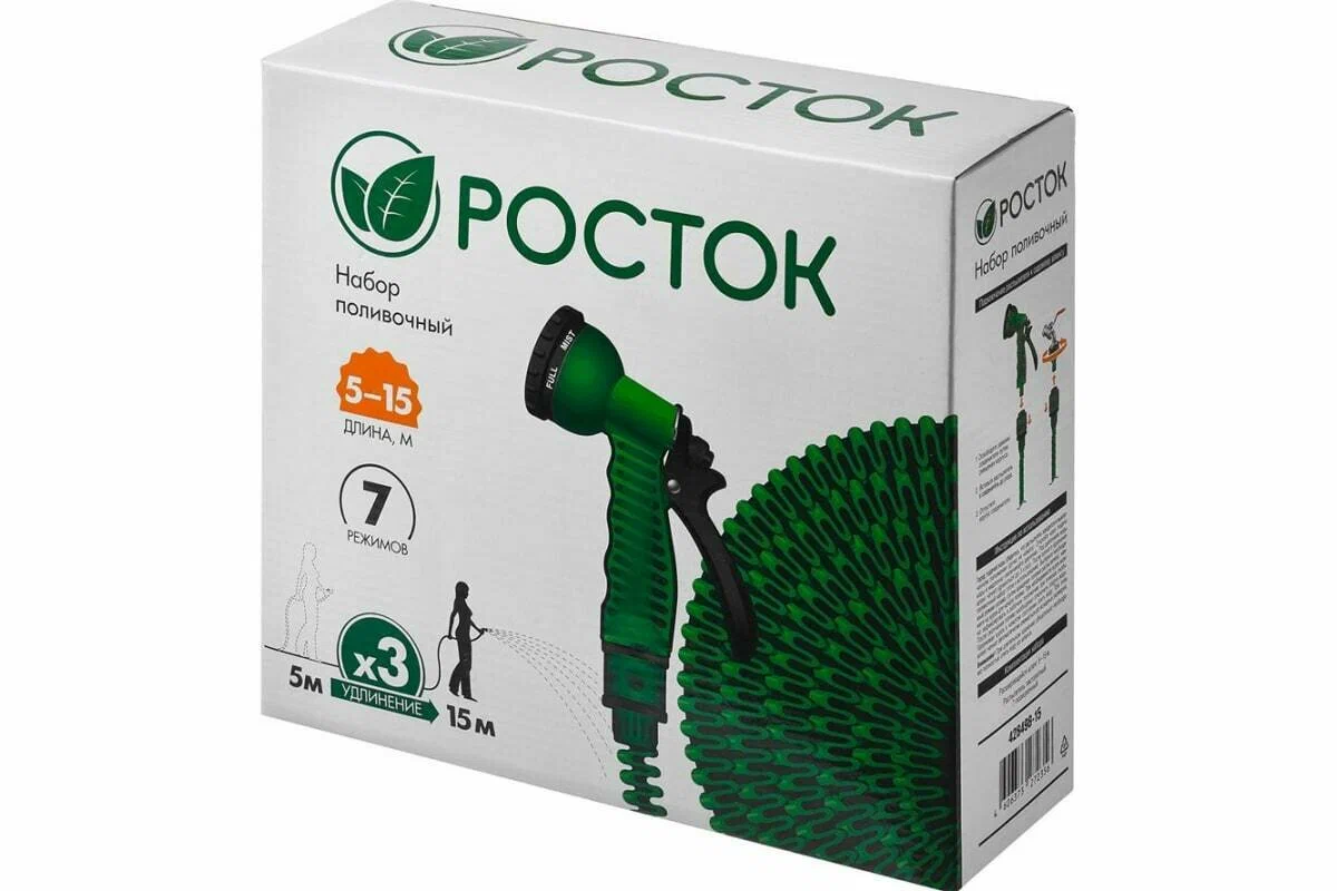 Набор РОСТОК поливочный шланг15м, распылитель 7 позиций., адаптер внешний 1/2х3/4